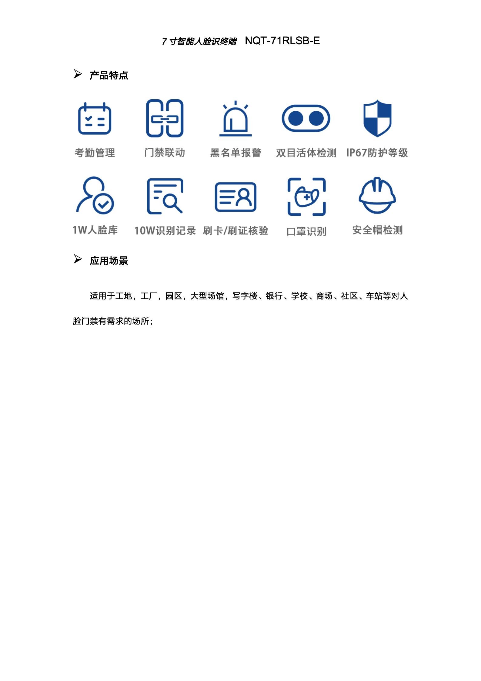 工地考勤人脸机 NQT-71RLSB-E-南京宁一网络科技有限公司